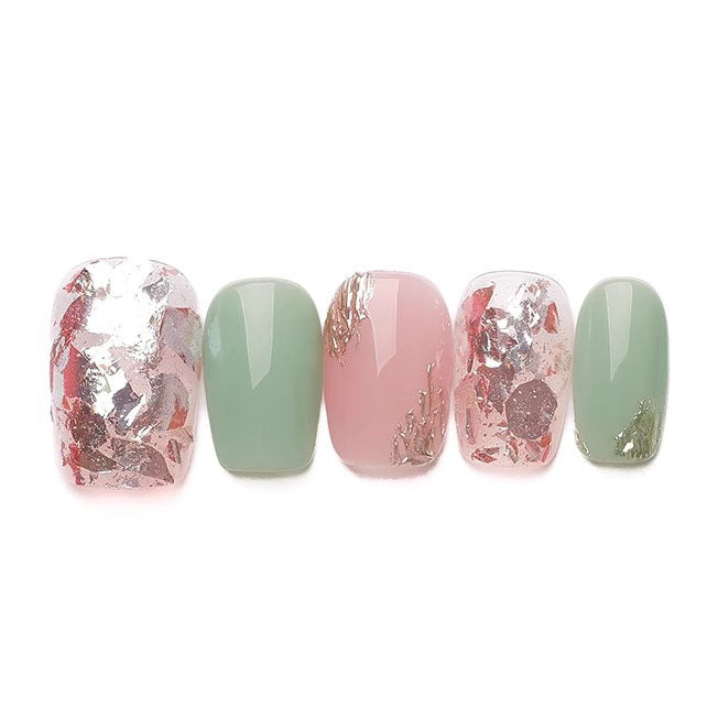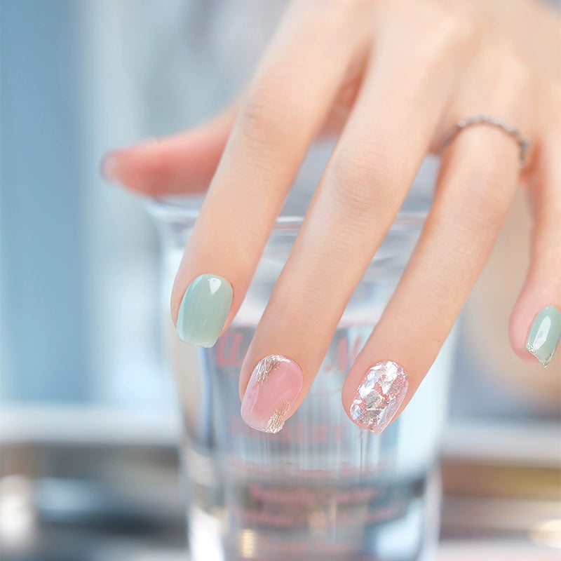 Handmade Nail Tip Short Crystal Two Piece Colorful Sparkling Fashion Cute Fake Nail Removable Whitening Advanced Wearing Nail Flakes Quick Nail Art Daily Basic Edition