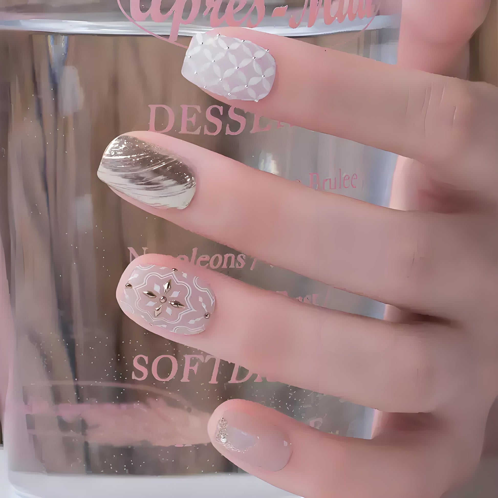 Nail, Handmade, Nail Tip, Popular, Fashionable, Cute, Fake Nail, Detachable, Whitening, Advanced, Nail Flakes, Quick Nail Art, Daily, Basic, Totem, Cloud, Short Squared Oval