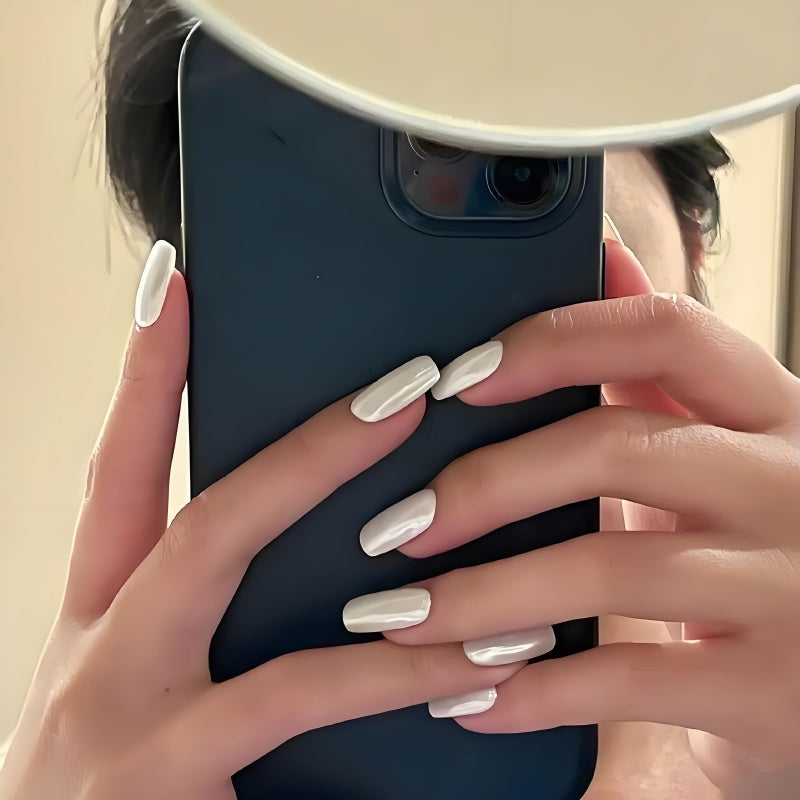 Elevate your nail art with these handmade, nail patches featuring a lustrous pearl white finish. Designed for daily wear, they offer a brightening effect that enhances your natural elegance. These detachable, high-end fake nails combine trendy style with practicality, allowing effortless removal. Perfect for those seeking a sophisticated yet cute look, they bring a subtle shine and fashionable charm to any occasion.