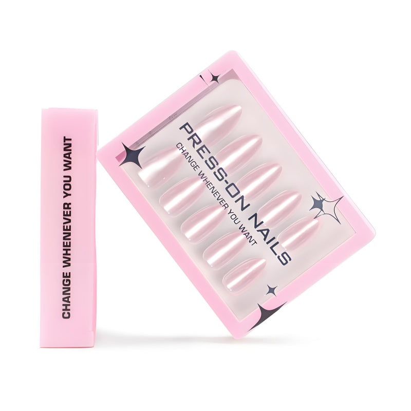 Elevate your manicure with these handmade pink crystal nail patches, designed in a chic almond shape for a sophisticated look. Their shiny, brightening finish adds a high-end touch to your daily style, while the detachable design ensures easy application and removal. Perfect for quick, fashionable nail art that complements any outfit with subtle elegance.