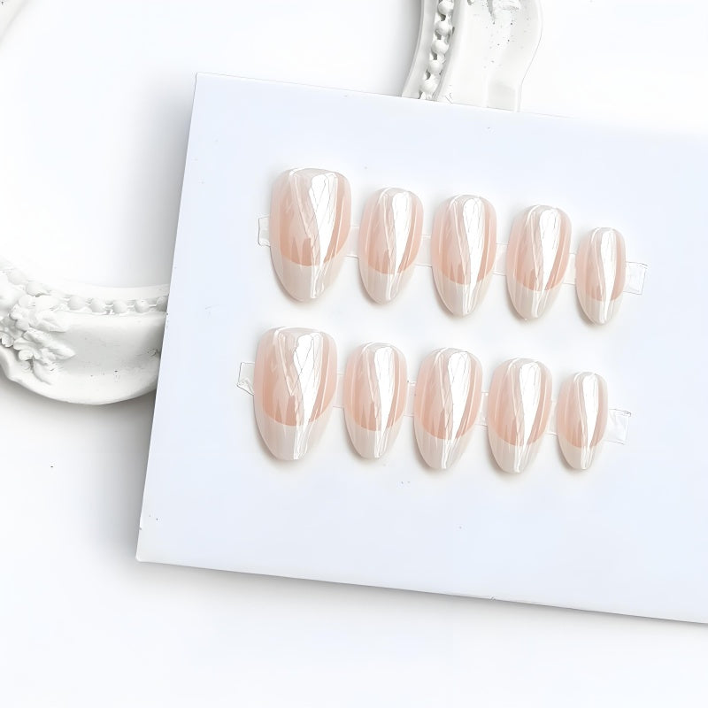 Nail, handmade, nail patch, round, shiny, trendy, fashionable, cute, fake nail, detachable, brightening, high-end, wearable nail, quick nail patch for nail art, daily use, basic style, French style