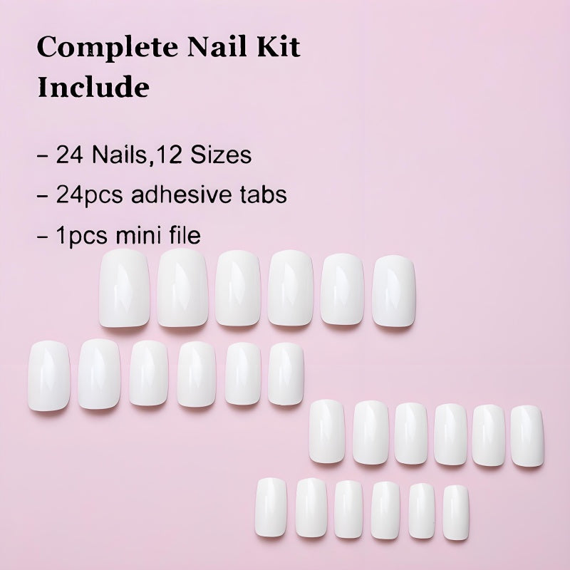 Experience understated elegance with these handmade, square-shaped white nail patches. Featuring a shiny, solid color finish, they offer a brightening effect that enhances your natural style. Designed for quick application and easy removal, these detachable fake nails provide a high-end, wearable look perfect for daily use. Their basic yet fashionable design makes them a versatile choice for a sophisticated and trendy manicure.